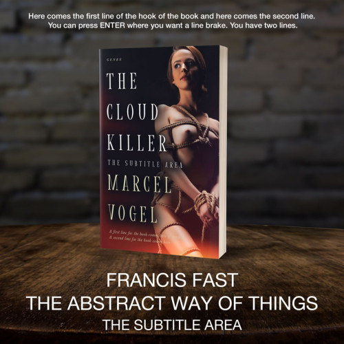 This book cover has 3 lines for the title, 1 line for the subtitle, 2 lines for the author, 2 lines for the hook, and finally 1 line for the genre.
