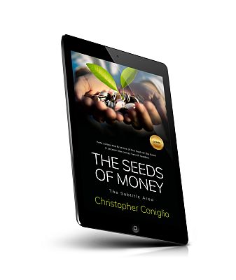 “A person's hands holding soil with two green saplings growing from a pile of coins, implying growth and financial gain.”