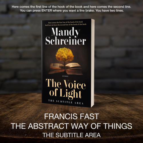This book cover has 2 lines for the title, 1 line for the subtitle, 2 lines for the author, 2 lines for the hook, and finally 1 line for the genre.
