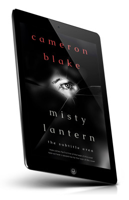 “A shattered glass effect with an eye peering through; dark and mysterious design with a focus on suspense.”