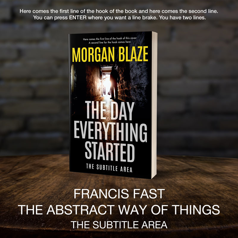This book cover has 3 lines for the title, 1 line for the subtitle, 1 line for the author, 2 lines for the hook.