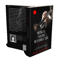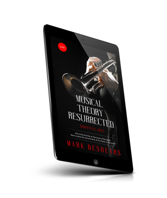 “A person plays a trumpet against a dark background, with text about musical theory and the author at the bottom.”