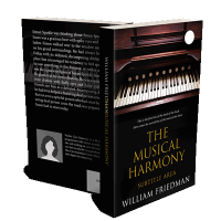“An open grand piano with visible keys, surrounded by book title text on a black background below.”