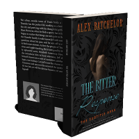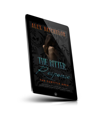 “A book cover featuring an elegant dark pattern with a partially visible person. The main title is "The Bitter Response."”