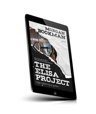 “A torn paper effect reveals a rustic door lock and keyhole, with bold text for a book cover titled "The Elisa Project."”
