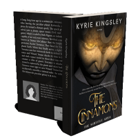 “A mysterious face with glowing eyes, partially hidden in shadow, above the title "The Cinnamons" and a subtitle area.”