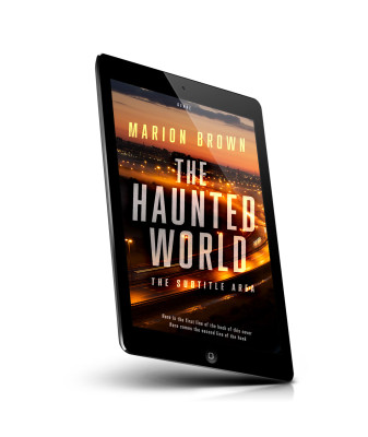 “A cityscape at dusk with blurred lights and motion trails, featuring a dramatic book title design in bold, large font.”