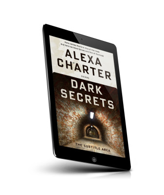 “A book cover featuring a tunnel with a single light, and the title "Dark Secrets."”