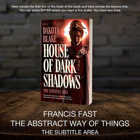 This book cover has 3 lines for the title, 1 line for the subtitle, 2 lines for the author, 2 lines for the hook, and finally 1 line for the genre.