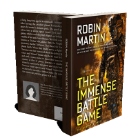 “A sci-fi book cover featuring a futuristic soldier in dark armor amidst fiery and smoky surroundings.”