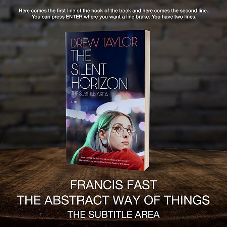This book cover has 3 lines for the title, 1 line for the subtitle, 1 line for the author, 2 lines for the hook, and finally 1 line for the genre.