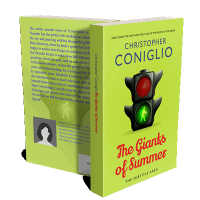 “A book cover with a black traffic light showing green and red. Background is bright green.”