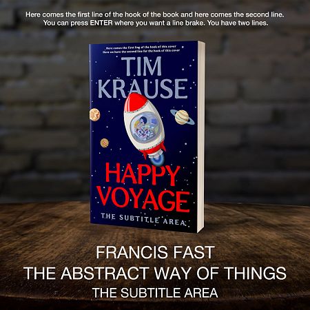 This book cover has 2 lines for the title, 1 line for the subtitle, 2 lines for the author, 2 lines for the hook.