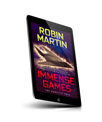 “A futuristic jet fighter soars with flashy colors and dynamic lighting. The bold title "IMMENSE GAMES" stands out at the bottom.”
