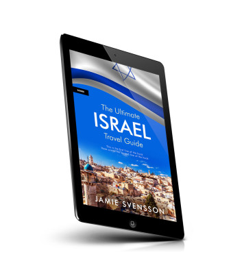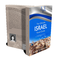 “Cover of a travel guide features a panoramic view of a city in Israel with an Israeli flag at the top.”