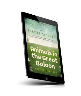 “A bright, whimsical book cover featuring a serene green landscape with trees and flowers under a blue sky.”