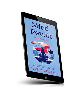 “A book cover featuring a person meditating by a lake with mountains and trees in the background under a blue and red color scheme.”