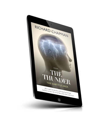 “A profile of a human-like head with a visible brain showing lightning inside, set against a dark gradient background.”