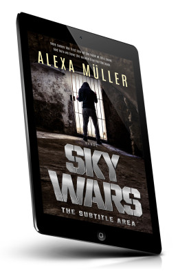 “A person stands in a dark, stone room facing barred windows, with the title "SKY WARS" in bold metallic letters below.”