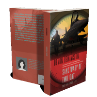 “A silhouette of a jet with a pilot against a dramatic sky, with a red overlay and title text at the bottom.”