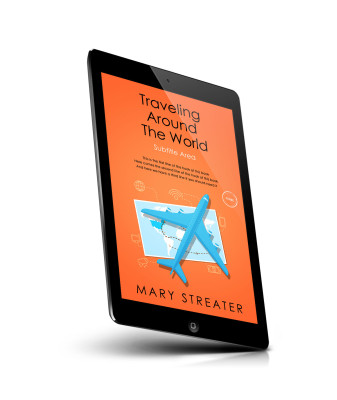 “An orange book cover featuring an airplane flying over a world map with travel-themed icons in the background.”