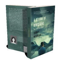 “A person stands facing a mountainous landscape under a stormy sky with text about a book cover overlaid on the scene.”