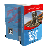“A stone lion statue sits in front of a traditional Chinese building with ornate details and vibrant colors under a clear sky.”
