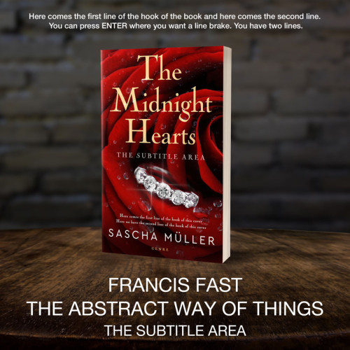 This book cover has 3 lines for the title, 1 line for the subtitle, 1 line for the author, 2 lines for the hook, and finally 1 line for the genre.