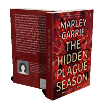 “Cover of a book titled "The Hidden Plague Season" with an image of a virus behind the text.”
