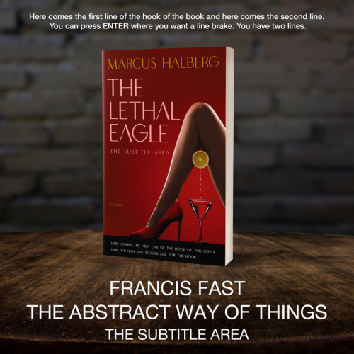 This book cover has 3 lines for the title, 1 line for the subtitle, 1 line for the author, 2 lines for the hook, and finally 1 line for the genre.