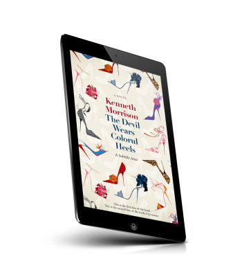 “Cover of a novel featuring various colorful high-heeled shoes. The background is light with a decorative pattern.”