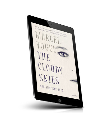 “A minimalist book cover featuring half of a woman's face on a textured, pale background.”