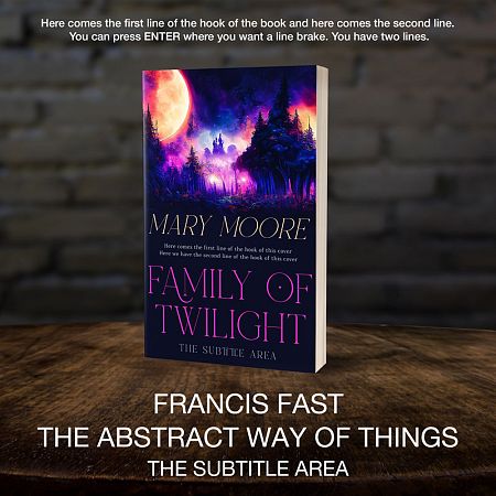 Other keywords revelant to this premade cover are mystery, abstract, light, silhouette, landscape, halloween, forest, tree, fog, shadow, moon, fairy, scene, darkness, dream, glowing, natural, fairy tale, mystical, mist, pink, magical, tale, foggy, purple, misty, fantastic, neon, full, full moon.