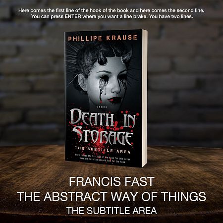 This book cover has 2 lines for the title, 1 line for the subtitle, 1 line for the author, 2 lines for the hook, and finally 1 line for the genre.