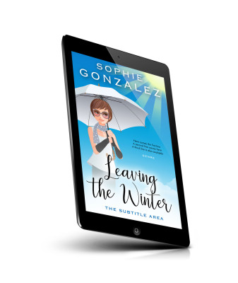 “An illustrated woman with glasses and a scarf holds an umbrella under a bright, sunny sky.”