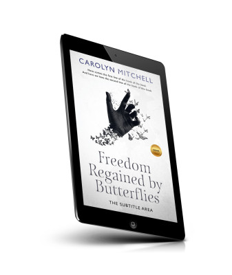“A hand transforms into butterflies against a light background. A gold seal is on the right side.”