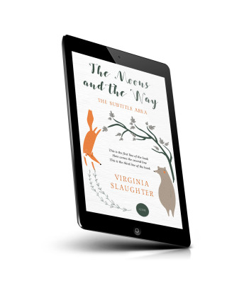 “A fox and bear beneath tree branches decorate a book cover with a muted color palette.”