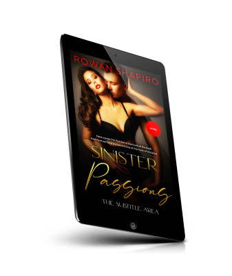 “A woman in lingerie poses sensually with a man embracing her from behind on a dark, seductive-themed book cover.”