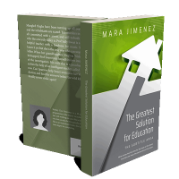 “A book cover with geometric designs in green and gray tones, featuring bold white text on education.”