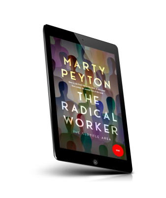 “Abstract, colorful silhouettes on a multicolored background with bold white text in the foreground. Red circle in the bottom right corner.”