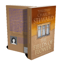 “A rustic window on a weathered wall; the lower half of the image features the book title "The Fields of Flower".”