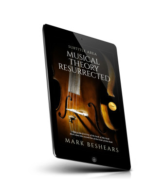 “A close-up of a violin with a book cover design. The background is dark, highlighting the wood texture and strings of the violin.”
