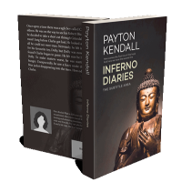 “A serene Buddha statue sits in the foreground against a dark background, with bold text on the left side listing a book title and author.”