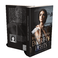 “A woman in a white dress gazes upward in a contemplative pose. The image is part of a book cover with an elegant, dark background.”