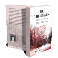 “A book cover with a watercolor cityscape featuring two people walking. The title "The Silken Luck" and the author's name "Ashton Clarke" are displayed.”