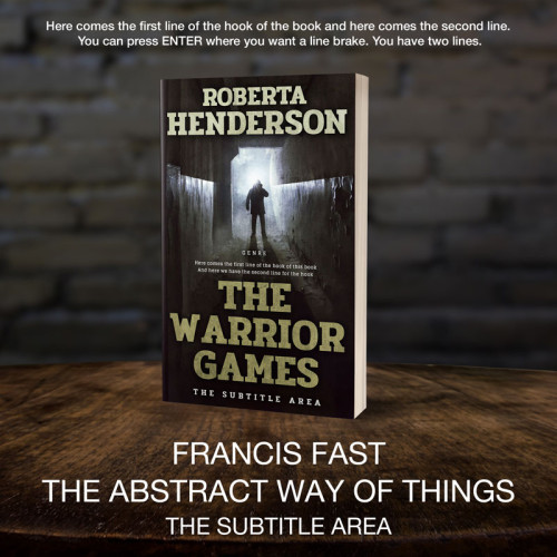 This book cover has 3 lines for the title, 1 line for the subtitle, 2 lines for the author, 2 lines for the hook, and finally 1 line for the genre.