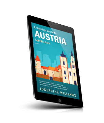 “Illustrated book cover featuring colorful buildings, a blue sky, and the title "A Travelers Guide to Austria" by Josephine Williams.”