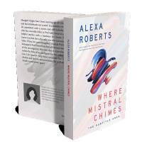 “Abstract colorful swirl on a light background with bold text detailing a book cover.”