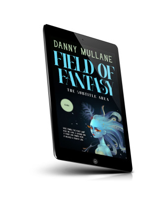 “A blue-skinned character with tentacle-like hair and colorful face paint appears below the title "Field of Fantasy".”