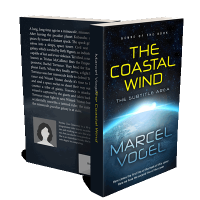 “A book cover with a planet, starry sky, and large yellow and blue title text. Subtitles and author name are present.”